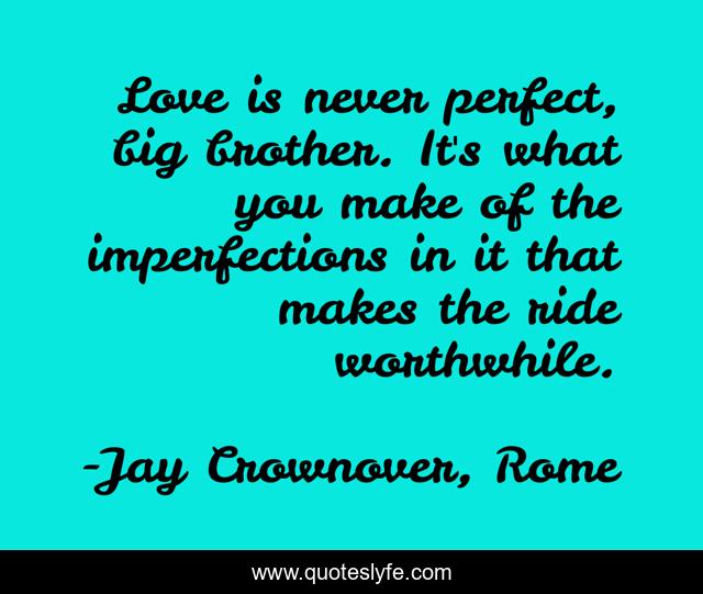 "Jay Crownover, Rome Quotes." Quoteslyfe.com, 2025. Tue. 09 Dec. 2025. <https://www.quoteslyfe.com/quote/Love-is-never-perfect-big-brother-It-220787>.