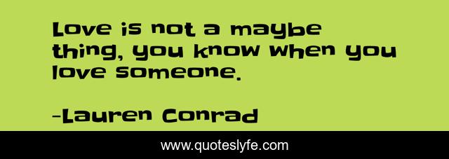 This page presents the quote "Love is not a maybe thing, you know when you love someone.". Author of this quote is Lauren Conrad. This quote is about true-love, celebrities, love, affection,.
