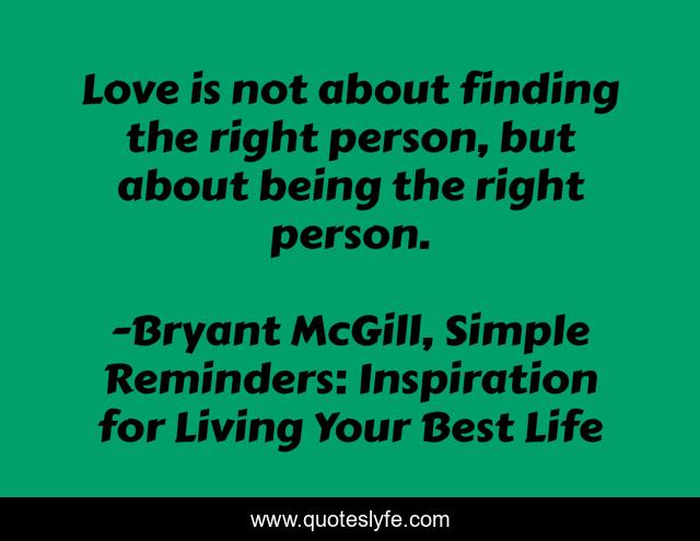 "Bryant McGill, Simple Reminders: Inspiration for Living Your Best Life Quotes." Quoteslyfe.com, 2025. Sat. 06 Dec. 2025. <https://www.quoteslyfe.com/quote/Love-is-not-about-finding-the-right-247481>.