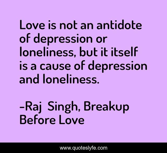 This page presents the quote "Love is not an antidote of depression or loneliness, but it itself is a cause of depression and loneliness.". Author of this quote is Raj Singh, Breakup Before Love. This quote is about romance, love, affection,.
