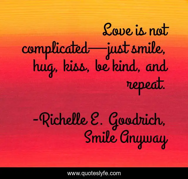 "Richelle E. Goodrich, Smile Anyway Quotes." Quoteslyfe.com, 2025. Sat. 06 Dec. 2025. <https://www.quoteslyfe.com/quote/Love-is-not-complicated-just-smile-hug-136714>.
