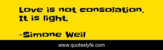 This page presents the quote "Love is not consolation. It is light.". Author of this quote is Simone Weil. This quote is about light, love, affection,.