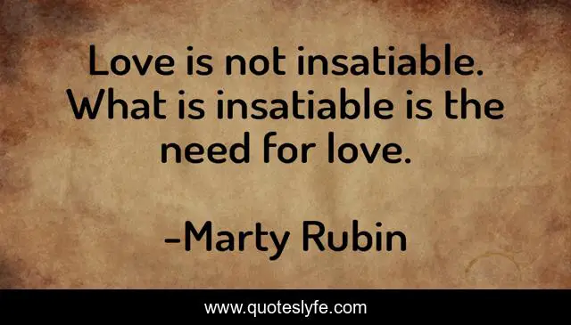 "Marty Rubin Quotes." Quoteslyfe.com, 2025. Sat. 06 Dec. 2025. <https://www.quoteslyfe.com/quote/Love-is-not-insatiable-What-is-insatiable-240834>.