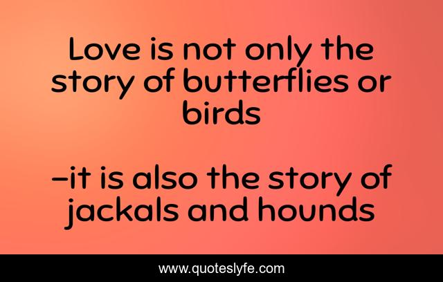 This page presents the quote "Love is not only the story of butterflies or birds". Author of this quote is it is also the story of jackals and hounds. .