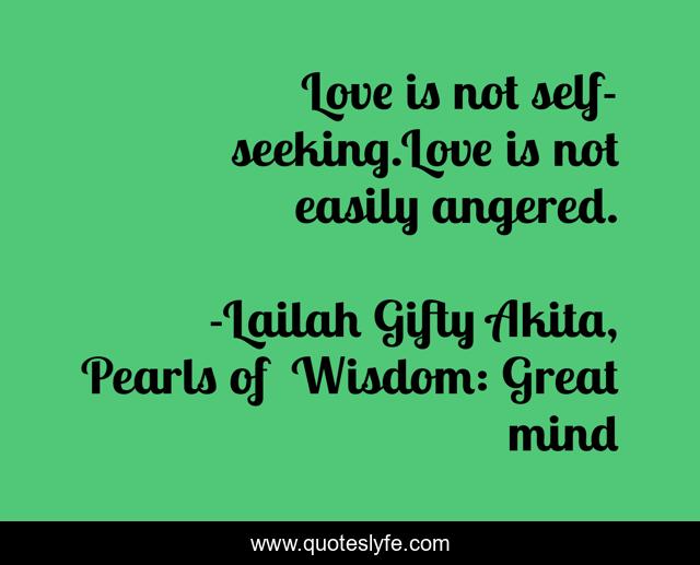 "Lailah Gifty Akita, Pearls of Wisdom: Great mind Quotes." Quoteslyfe.com, 2025. Fri. 05 Dec. 2025. <https://www.quoteslyfe.com/quote/Love-is-not-self-seeking-Love-is-77444>.