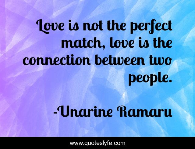 This page presents the quote "Love is not the perfect match, love is the connection between two people.". Author of this quote is Unarine Ramaru. This quote is about perfect, relationships, love, connection, chemistry, affection,.