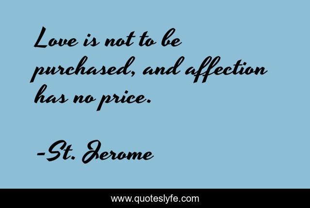 This page presents the quote "Love is not to be purchased, and affection has no price.". Author of this quote is St. Jerome. This quote is about price, affection, love is,.
