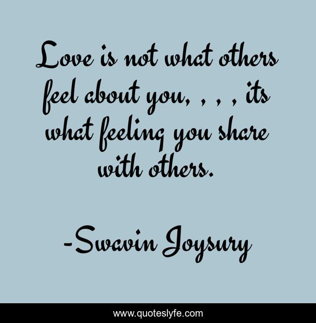 "Swavin Joysury Quotes." Quoteslyfe.com, 2025. Sat. 06 Dec. 2025. <https://www.quoteslyfe.com/quote/Love-is-not-what-others-feel-about-162246>.