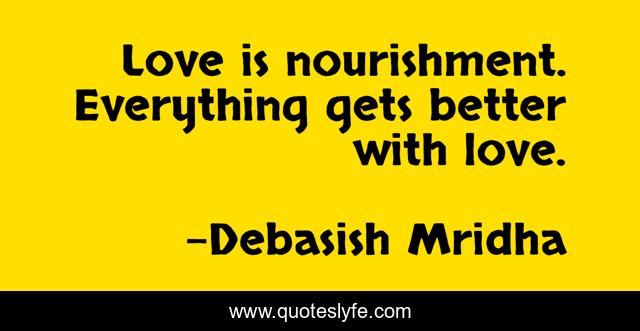 "Debasish Mridha Quotes." Quoteslyfe.com, 2025. Sun. 07 Dec. 2025. <https://www.quoteslyfe.com/quote/Love-is-nourishment-Everything-gets-better-with-206644>.