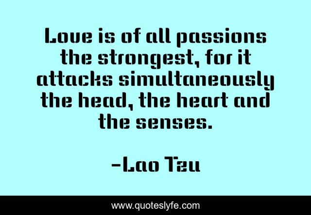This page presents the quote "Love is of all passions the strongest, for it attacks simultaneously the head, the heart and the senses.". Author of this quote is Lao Tzu. This quote is about heart, head, love is,.