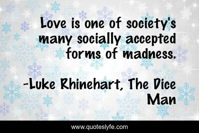 This page presents the quote "Love is one of society's many socially accepted forms of madness.". Author of this quote is Luke Rhinehart, The Dice Man. This quote is about love, madness, affection,.