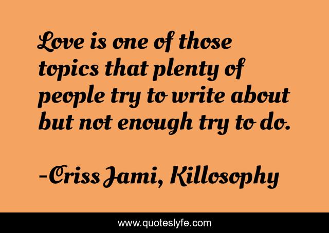"Criss Jami, Killosophy Quotes." Quoteslyfe.com, 2025. Sat. 06 Dec. 2025. <https://www.quoteslyfe.com/quote/Love-is-one-of-those-topics-that-18845>.