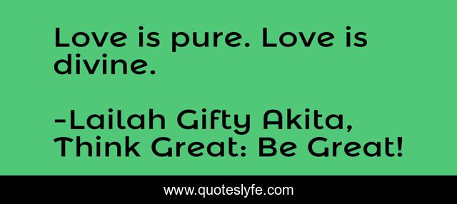 "Lailah Gifty Akita, Think Great: Be Great! Quotes." Quoteslyfe.com, 2025. Sat. 06 Dec. 2025. <https://www.quoteslyfe.com/quote/Love-is-pure-Love-is-divine-147695>.