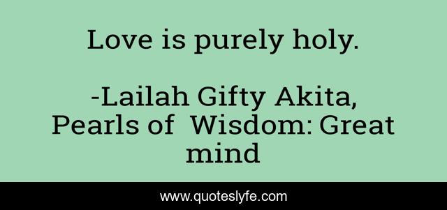 "Lailah Gifty Akita, Pearls of Wisdom: Great mind Quotes." Quoteslyfe.com, 2025. Sun. 07 Dec. 2025. <https://www.quoteslyfe.com/quote/Love-is-purely-holy-147669>.