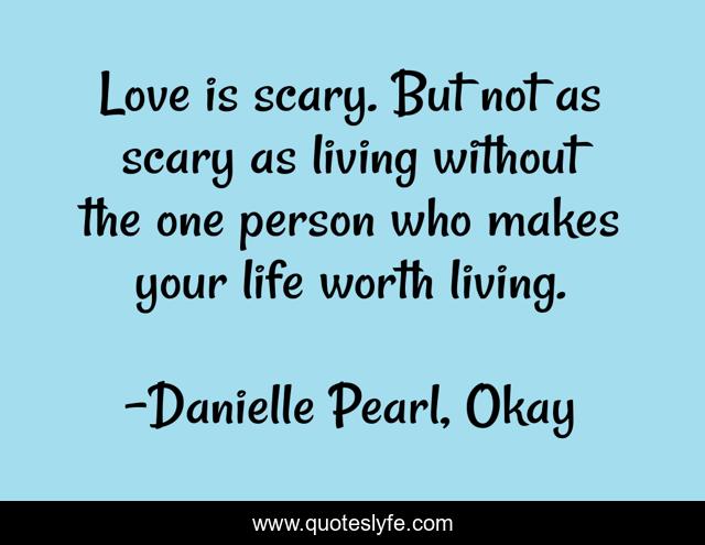 This page presents the quote "Love is scary. But not as scary as living without the one person who makes your life worth living.". Author of this quote is Danielle Pearl, Okay. This quote is about living, life, love, danielle-pearl, affection,.