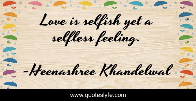 "Heenashree Khandelwal Quotes." Quoteslyfe.com, 2025. Mon. 08 Dec. 2025. <https://www.quoteslyfe.com/quote/Love-is-selfish-yet-a-selfless-feeling-242228>.
