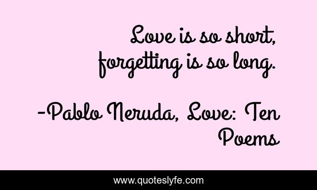 This page presents the quote "Love is so short, forgetting is so long.". Author of this quote is Pablo Neruda, Love: Ten Poems. This quote is about love, affection,.