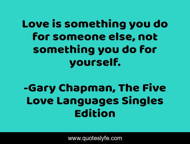 "Gary Chapman, The Five Love Languages Singles Edition Quotes." Quoteslyfe.com, 2025. Mon. 08 Dec. 2025. <https://www.quoteslyfe.com/quote/Love-is-something-you-do-for-someone-34797>.