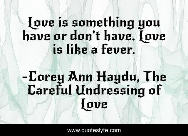 This page presents the quote "Love is something you have or don’t have. Love is like a fever.". Author of this quote is Corey Ann Haydu, The Careful Undressing of Love. This quote is about love, affection,.