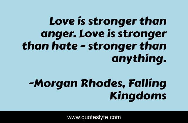 "Morgan Rhodes, Falling Kingdoms Quotes." Quoteslyfe.com, 2025. Sat. 06 Dec. 2025. <https://www.quoteslyfe.com/quote/Love-is-stronger-than-anger-Love-is-175702>.