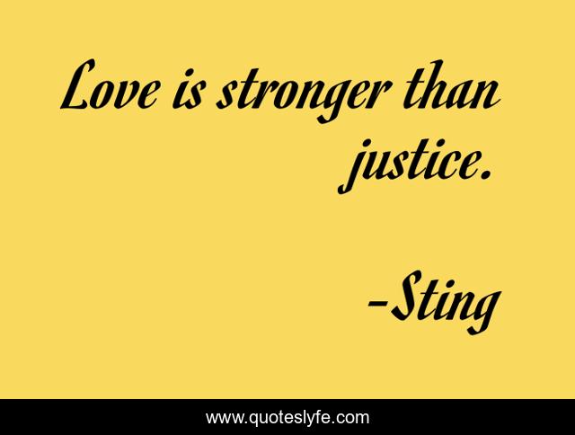 This page presents the quote "Love is stronger than justice.". Author of this quote is Sting. This quote is about justice, stronger, love is,.
