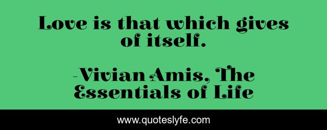 "Vivian Amis, The Essentials of Life Quotes." Quoteslyfe.com, 2025. Sat. 06 Dec. 2025. <https://www.quoteslyfe.com/quote/Love-is-that-which-gives-of-itself-135294>.
