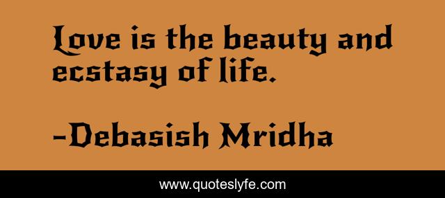 This page presents the quote "Love is the beauty and ecstasy of life.". Author of this quote is Debasish Mridha. This quote is about love, philosophy, debasish-mridha, ecstasy-of-life, quotes, debasish-mridha-md, inspirational, enthusiasm, beauty-of-life,.