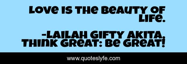 "Lailah Gifty Akita, Think Great: Be Great! Quotes." Quoteslyfe.com, 2025. Sun. 07 Dec. 2025. <https://www.quoteslyfe.com/quote/Love-is-the-beauty-of-life-77325>.