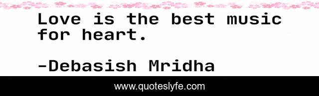 This page presents the quote "Love is the best music for heart.". Author of this quote is Debasish Mridha. This quote is about love, music-for-the-heart, philosophy, debasish-mridha, quotes, music, inspirational, enthusiasm, debasish-mridha-m-d,.