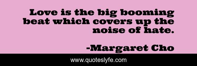 This page presents the quote "Love is the big booming beat which covers up the noise of hate.". Author of this quote is Margaret Cho. This quote is about hate, love, affection,.