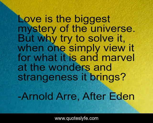 "Arnold Arre, After Eden Quotes." Quoteslyfe.com, 2025. Sat. 06 Dec. 2025. <https://www.quoteslyfe.com/quote/Love-is-the-biggest-mystery-of-the-146063>.