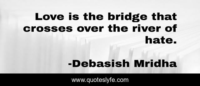This page presents the quote "Love is the bridge that crosses over the river of hate.". Author of this quote is Debasish Mridha. This quote is about love, philosophy, debasish-mridha, river-of-hate, quotes, affection, inspirational, love-is-the-bridge, enthusiasm,.