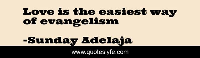 "Sunday Adelaja Quotes." Quoteslyfe.com, 2025. Fri. 05 Dec. 2025. <https://www.quoteslyfe.com/quote/Love-is-the-easiest-way-of-evangelism-39964>.