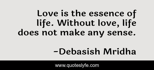 This page presents the quote "Love is the essence of life. Without love, life does not make any sense.". Author of this quote is Debasish Mridha. This quote is about love, essence-of-life, without-love, philosophy, debasish-mridha, life-without-love, quotes, debasish-mridha-md, inspirational,.