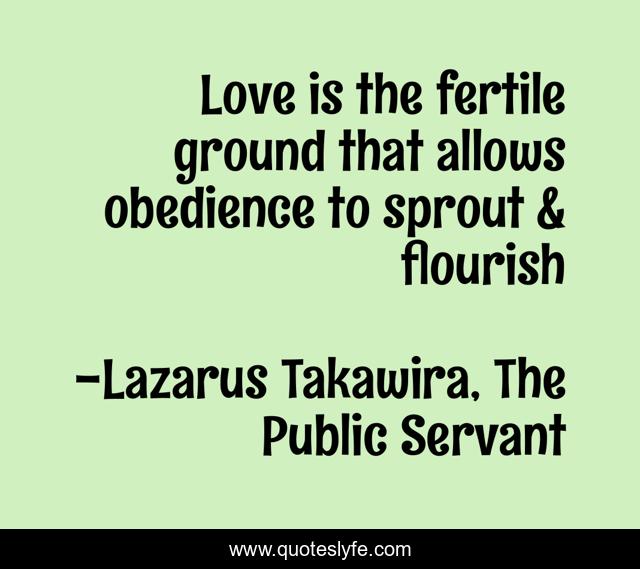 This page presents the quote "Love is the fertile ground that allows obedience to sprout & flourish". Author of this quote is Lazarus Takawira, The Public Servant. .