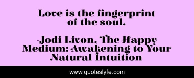 "Jodi Livon, The Happy Medium: Awakening to Your Natural Intuition Quotes." Quoteslyfe.com, 2025. Tue. 09 Dec. 2025. <https://www.quoteslyfe.com/quote/Love-is-the-fingerprint-of-the-soul-180059>.