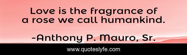 This page presents the quote "Love is the fragrance of a rose we call humankind.". Author of this quote is Anthony P. Mauro, Sr.. .