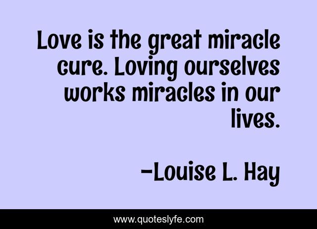 "Louise L. Hay Quotes." Quoteslyfe.com, 2025. Sat. 06 Dec. 2025. <https://www.quoteslyfe.com/quote/Love-is-the-great-miracle-cure-Loving-267596>.
