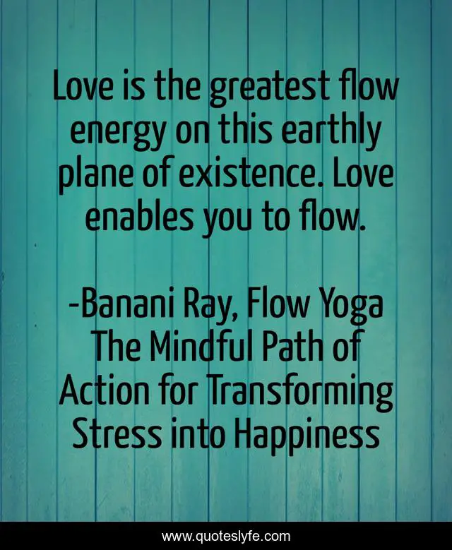 This page presents the quote "Love is the greatest flow energy on this earthly plane of existence. Love enables you to flow.". Author of this quote is Banani Ray, Flow Yoga The Mindful Path of Action for Transforming Stress into Happiness. This quote is about life, love, flow, life-and-sayings, love-q, affection,.