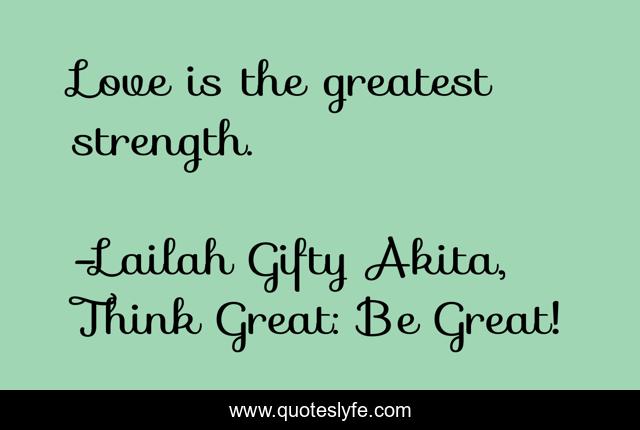 "Lailah Gifty Akita, Think Great: Be Great! Quotes." Quoteslyfe.com, 2025. Mon. 08 Dec. 2025. <https://www.quoteslyfe.com/quote/Love-is-the-greatest-strength-77346>.
