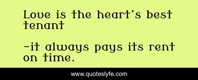 This page presents the quote "Love is the heart’s best tenant". Author of this quote is it always pays its rent on time.. .