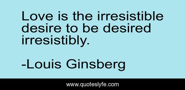 "Louis Ginsberg Quotes." Quoteslyfe.com, 2025. Sat. 06 Dec. 2025. <https://www.quoteslyfe.com/quote/Love-is-the-irresistible-desire-to-be-270170>.