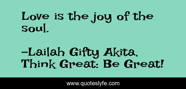 "Lailah Gifty Akita, Think Great: Be Great! Quotes." Quoteslyfe.com, 2025. Mon. 08 Dec. 2025. <https://www.quoteslyfe.com/quote/Love-is-the-joy-of-the-soul-97294>.