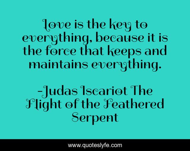 "Judas Iscariot The Flight of the Feathered Serpent Quotes." Quoteslyfe.com, 2025. Sat. 06 Dec. 2025. <https://www.quoteslyfe.com/quote/Love-is-the-key-to-everything-because-280560>.