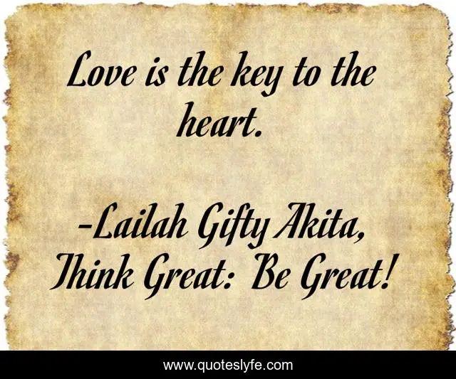 "Lailah Gifty Akita, Think Great: Be Great! Quotes." Quoteslyfe.com, 2025. Mon. 08 Dec. 2025. <https://www.quoteslyfe.com/quote/Love-is-the-key-to-the-heart-77304>.