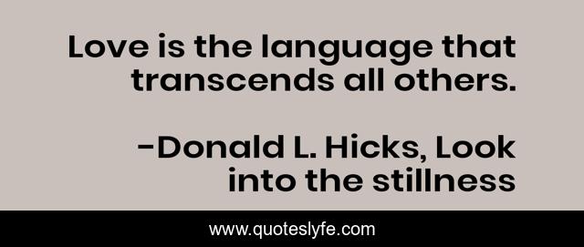 "Donald L. Hicks, Look into the stillness Quotes." Quoteslyfe.com, 2025. Fri. 05 Dec. 2025. <https://www.quoteslyfe.com/quote/Love-is-the-language-that-transcends-all-121299>.
