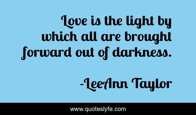 This page presents the quote "Love is the light by which all are brought forward out of darkness.". Author of this quote is LeeAnn Taylor. This quote is about life, heaven, love, darkness, people, light, peace, society, unity,.