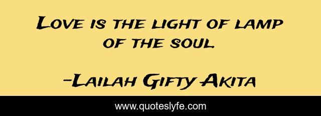 This page presents the quote "Love is the light of lamp of the soul.". Author of this quote is Lailah Gifty Akita. This quote is about light, inspiring, love, affection,.
