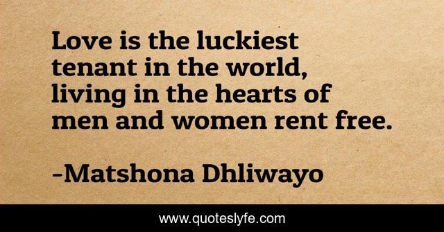 "Matshona Dhliwayo Quotes." Quoteslyfe.com, 2025. Mon. 08 Dec. 2025. <https://www.quoteslyfe.com/quote/Love-is-the-luckiest-tenant-in-the-49906>.