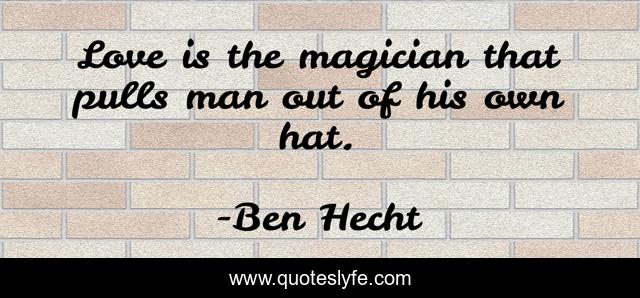 This page presents the quote "Love is the magician that pulls man out of his own hat.". Author of this quote is Ben Hecht. .